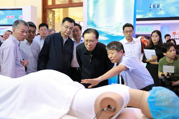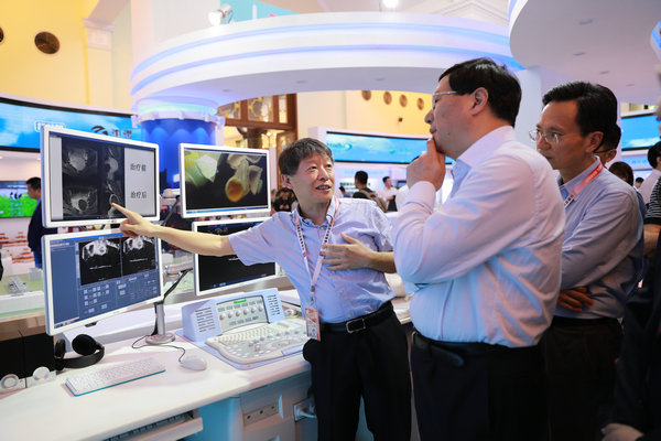 林念修副主任在海扶醫(yī)療展臺觀看聚焦超聲治療演示