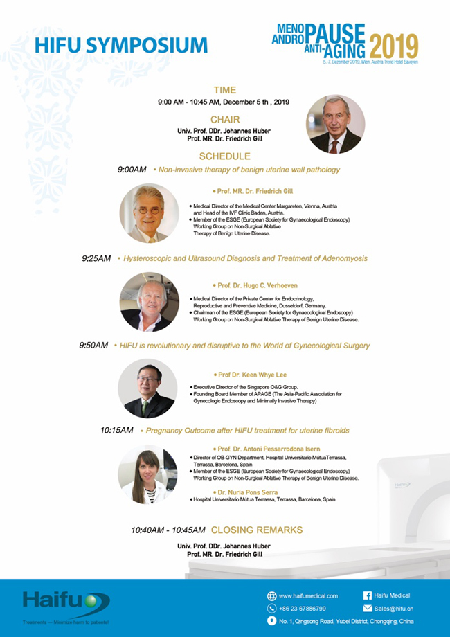 歐洲婦科內(nèi)鏡協(xié)會(ESGE)的“非手術(shù)治療子宮良性疾”工作組主席Hugo C. Verhoeven教授和工作組成員Friedrich Gill教授(奧地利HIFU治療中心負責(zé)人)主持了海扶®研討會。