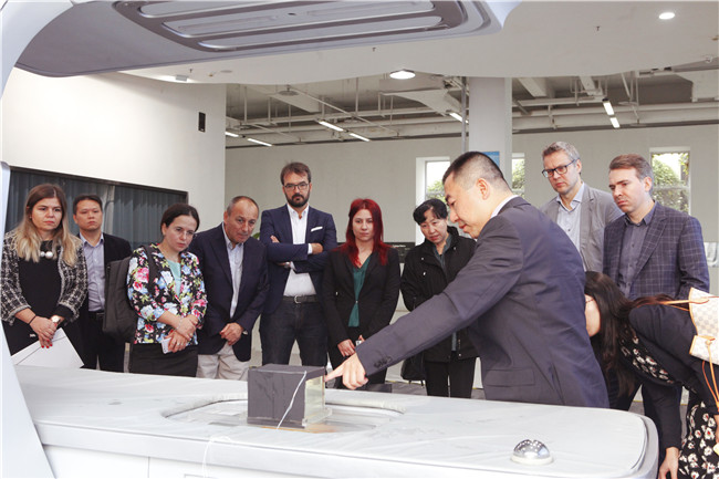 “17+1”代表團一行在觀摩了聚焦超聲消融手術模擬治療后,還親身感受了聚焦超聲消融的威力,對這一技術產生了極大的興趣!他們對這一中國原創的治療設備感到驚喜,表示希望早日能夠將這一技術和設備引入他們的國家!