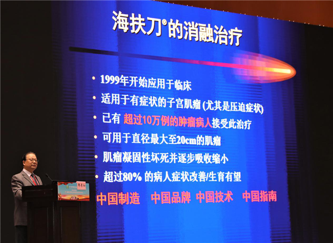 中國工程院郎景和院士講到,醫學是仁學,是人學,以人為本,具備科學、社會、人文三種屬性。醫療對象是有思想感情,意識、意愿,有家庭和社會背景的人。因此我們要關愛婦女,保護婦女的子宮。子宮是女性生殖器官的軸心、生殖的圣地、孕育的搖籃、女性的尊嚴。而子宮肌瘤是可能導致女性切除子宮的一種常見婦科腫瘤,其是最為常見、問題最多、治療方案最多、治療最難抉擇的,是最體現規范化、個體化、微創化、人性化“四化”的腫瘤,術式或途徑有經腹、經陰道、經腹腔鏡、經宮腔鏡,各種方式都有其適應癥、非適應癥和禁忌癥,不要刻意或固守一種手術方式。海扶刀®治療也是常用于子宮肌瘤的一種手術方式,于1999年開始應用于臨床,適用于有癥狀的子宮肌瘤(尤其是壓迫癥狀),可治療直徑最大至20cm的肌瘤,治療后肌瘤凝固性壞死并逐漸吸收縮小,超過80%的病人癥狀改善、生育有望。在婦科良性疾病中,其還可用于子宮腺肌病、胎盤植入、切口妊娠、宮角妊娠、妊娠殘留物、功能性子宮出血的治療。海扶刀®設備是中國制造、中國品牌,擁有中國的指南,截至目前已有超過12萬例的腫瘤病人接受此治療。