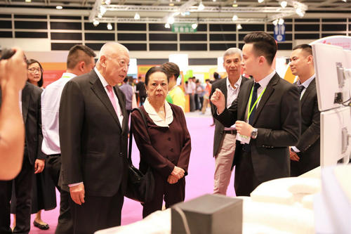 9月22日,全國政協副主席/團結香港基金主席董建華,提前巡館時在重慶海扶醫療展臺聽工作人員介紹海扶刀®