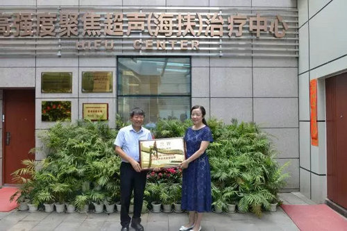 隨后,海扶刀®發(fā)明人王智彪教授給我院頒發(fā)了“首創(chuàng)全球7000例紀(jì)錄 聚焦超聲手術(shù)新里程碑”的榮譽(yù)牌。