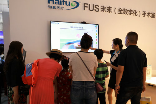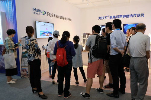 在展覽現場,海扶醫療展示了近代手術治療發展的兩次飛躍:從傳統創傷較大的開腹手術到創傷較小的腔鏡手術,再到從體外向體內治療,身體上沒有任何創傷的聚焦超聲治療。海扶刀®的出現讓患者在手術治療時不再流血,不再切除器官,這是醫學文明的進步。讓病人受傷害更小,始終是醫學文明發展的方向,更是我們孜孜不倦的追求。