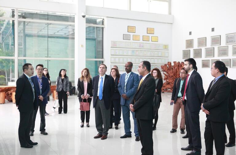 作為聚焦超聲外科(FUS)治療的發源地,重慶海扶醫療,幾近國際友人“打卡”新絲綢之路的必經之地。2017年10月20日,由中國外交部主辦的“2017外交官重走絲綢之路”代表團,慕名來到重慶海扶醫療參觀訪問。該代表團以希臘駐華大使萊奧尼達斯.羅卡納斯為團長,包括意大利、阿根廷等15個國家駐華使館外交官。
