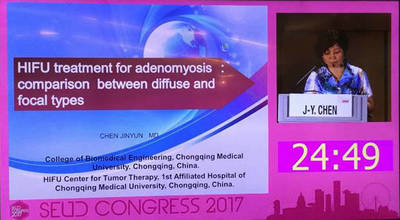 近年來,聚焦超聲消融手術(shù)作為一種無創(chuàng)的治療手段在子宮良性疾病治療中日漸成熟,并成為此次大會(huì)的亮點(diǎn)。重慶醫(yī)科大學(xué)附屬第一醫(yī)院海扶®微無創(chuàng)治療中心的副主任陳錦云博士在會(huì)上發(fā)表了題為《高強(qiáng)度聚焦超聲消融手術(shù)治療局部和彌漫性子宮腺肌癥對(duì)比臨床研究》的主題學(xué)術(shù)報(bào)告,通過臨床案例分析,以及臨床研究數(shù)據(jù)的支撐,向與會(huì)的全球婦產(chǎn)科專家展示了聚焦超聲消融手術(shù)治療子宮腺肌癥的可行性,以及其安全性、有效性。聚焦超聲消融手術(shù)為這一困擾婦科臨床的子宮良性疾病的治療開辟了一條在無創(chuàng)治療的同時(shí),能保衛(wèi)女性子宮及生育能力的嶄新臨床路徑。