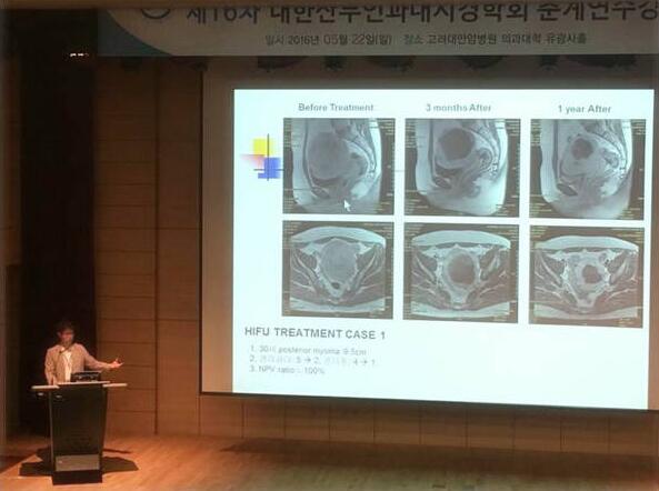 100多位韓國(guó)著名的婦產(chǎn)科專(zhuān)家參加了此次年會(huì),來(lái)自西班牙 HUMT 大學(xué)醫(yī)院的婦產(chǎn)科專(zhuān)家Antoni Pessarrodona、重慶醫(yī)科大學(xué)的張煉教授以及韓國(guó)現(xiàn)代 UVIS 醫(yī)院的辛宗承教授在年會(huì)的HIFU專(zhuān)題中發(fā)表了精彩的演說(shuō),他們分享了超聲引導(dǎo)的HIFU治療子宮肌瘤及腺肌癥的經(jīng)驗(yàn)以及結(jié)果。3位HIFU專(zhuān)家的演講引起與會(huì)者的極大興趣,韓國(guó)的婦產(chǎn)科專(zhuān)家們積極提問(wèn),并與3位專(zhuān)家就對(duì)于有生育需求的女性的HIFU治療展開(kāi)了熱烈的討論,會(huì)議時(shí)間不得不一再延長(zhǎng),可見(jiàn)HIFU技術(shù)治療婦科良性疾病的安全性和有效性已得到韓國(guó)學(xué)界的廣泛認(rèn)可,大家已開(kāi)始研究討論適應(yīng)癥優(yōu)化等進(jìn)一步的學(xué)術(shù)議題。