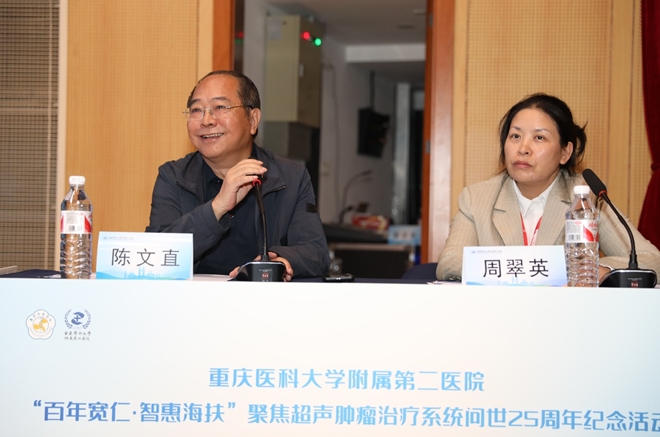 袁軍書記致辭,百年寬仁、智惠海扶,聚焦超聲技術于 1988 年發源于重醫附二院,在其發展的幾十年歷程中,每一個重大節點重醫附二院都留下了身影。從過去到現在,我們始終致力于產學研一體化推進,積極探索醫工融合之路,不斷激發新質生產力。聚焦超聲技術作為中國的原創技術,有著廣闊的發展前景。我們有信心將其用好,使其造福更多的患者,為推動醫療事業的發展,為更多患者帶來福祉而努力奮斗!
