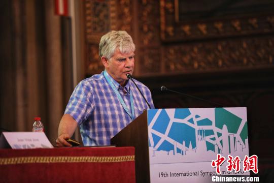 圖為國際微無創(chuàng)醫(yī)學(xué)學(xué)會(huì)主席、英國牛津大學(xué)丘吉爾醫(yī)院FUS中心主任David Cranston演講?!⌒焓z