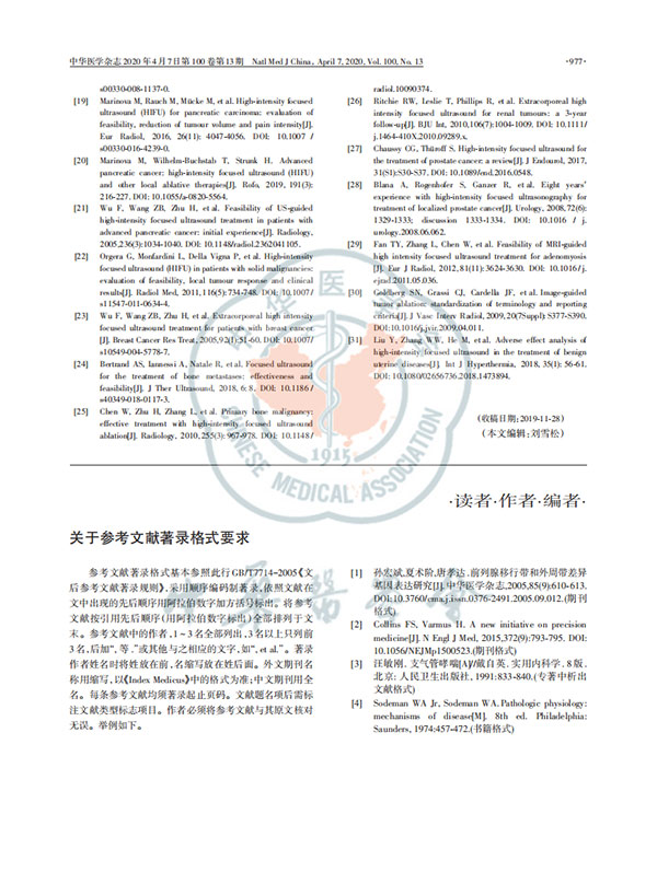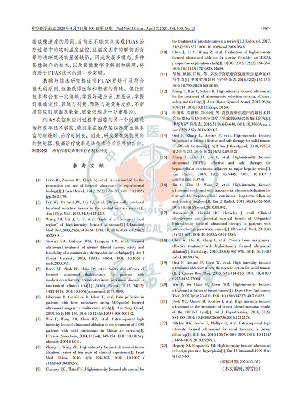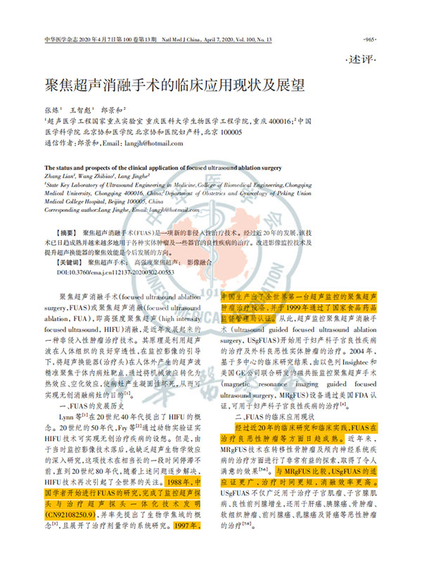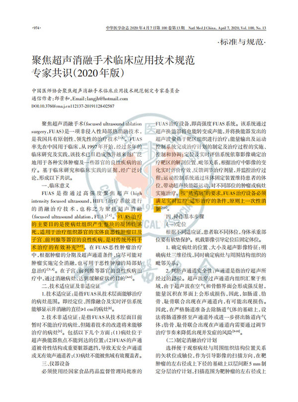 聚焦超聲消融手術(shù)臨床應(yīng)用技術(shù)規(guī)范專家共識2020版